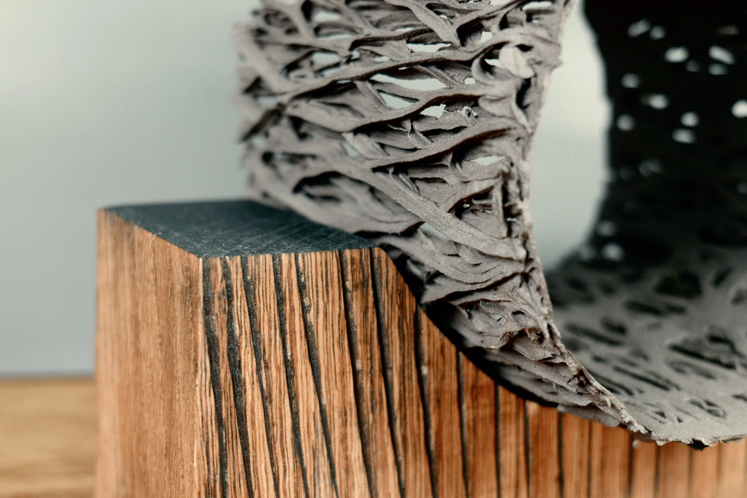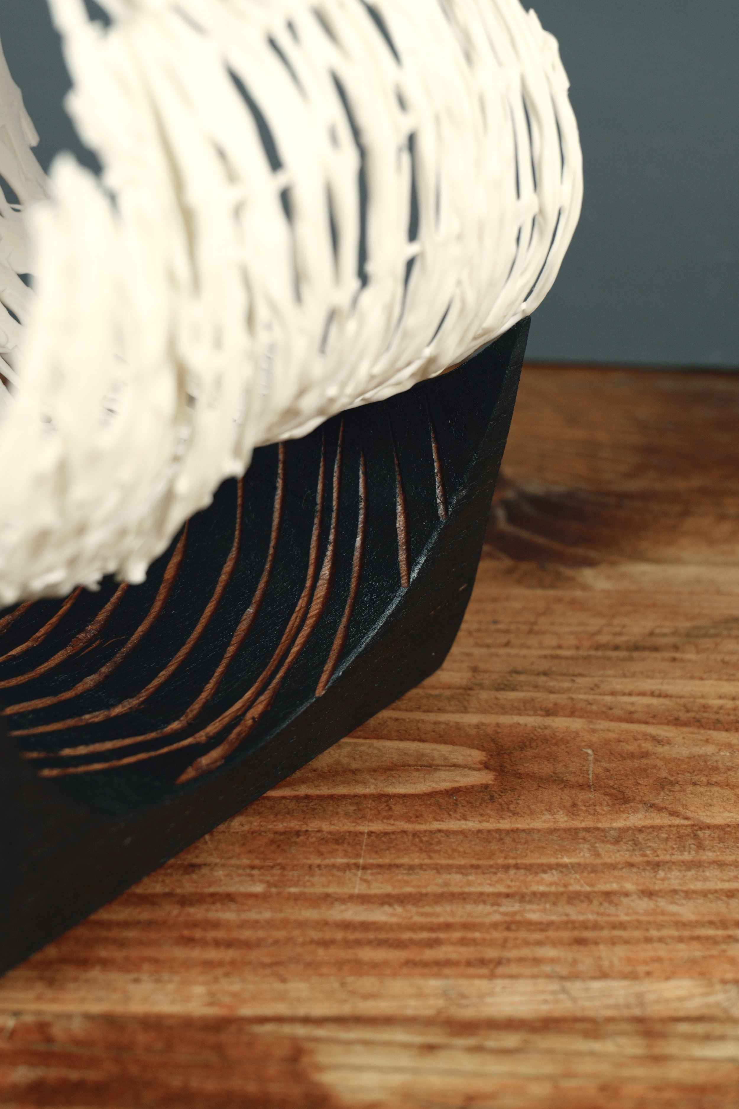 Responding to a collection of ceramic pieces by ceramicist Sarah Glover, I created a series of organic wooden forms. Contrasting with the delicate nature of the ceramic, the solidity of the wood is emphasised through the carving techniques used.