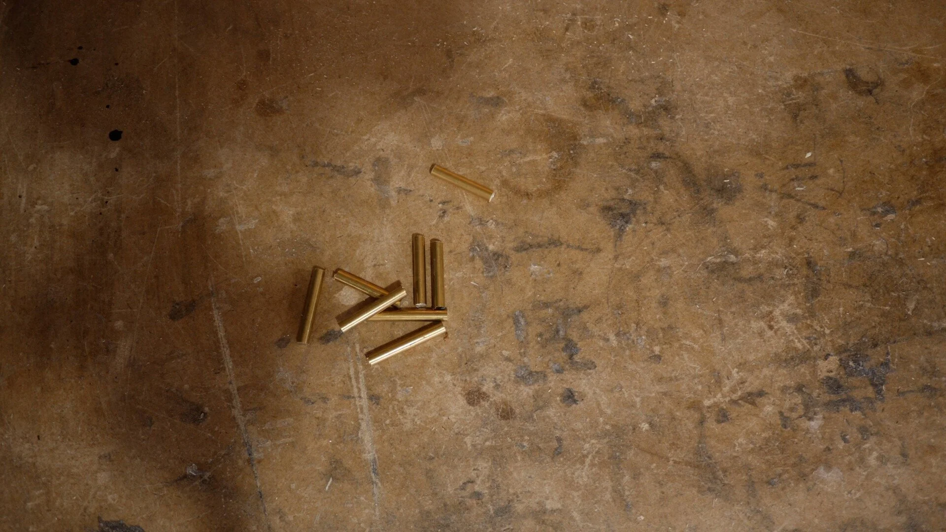I mixed up a small batch of epoxy and spread it onto the brass rod. I could now tap them down into the holes I had drilled. When the epoxy had dried I could sand the pins flush with the sides.