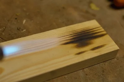 As this was just made from some old pallets and had nail holes in it I wanted it to have a distressed look. To emphasize this I used a blow torch to slightly burn the wood which bring out the grain.