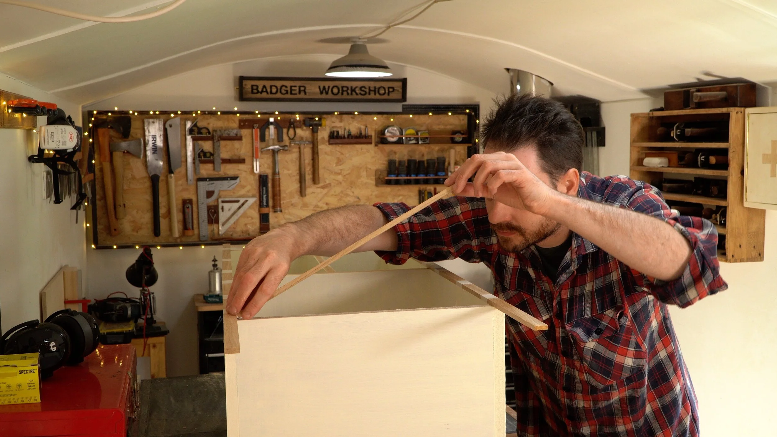 I started with the vegetable storage crates. I made the main body of the cabinet out of some MDF and then painted it white using some chalk paint. I then finished the edges with some solid oak edge banding that I had cut.