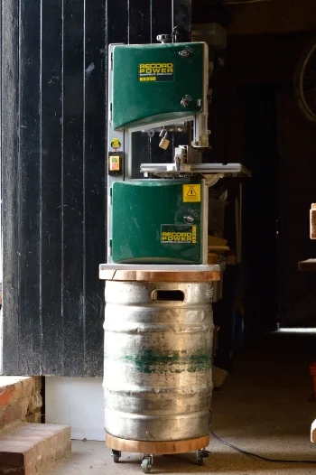 I was having a bit of a sort out and I came across a old beer keg that someone had dumped in the pub car park. As it was just taking up space I decided to turn it into something useful. I needed a movable workstation for my bandsaw and thought this might fit the bill.