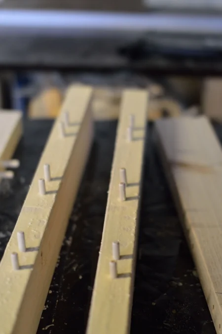I then used my dowel cutter to drill along the lines I had drawn.