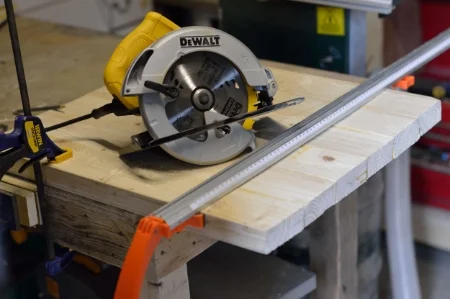 When the glue had set up I used a straight edge and circular saw the trim the edges and make the whole top square.