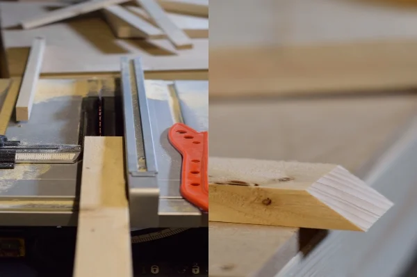 I wanted to put a fame around the bale so I cut some thinner strips on the table saw and then using the mitre saw cut 45' angles on them.