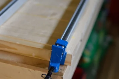 I glued up the boards and hammered in the dowels. Then clamped the top together.