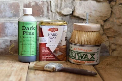 I sanded the top down then it was time to add a finish to it. I started with a dark pine stain that I brushed on and wiped off with a cloth. The next day I brushed on some hard wax oil. I let it dry for 8 hours, gave it a light sand then another coat. The next day I rubbed on some Briwax and when dry I buffed it off with my brush in a hand drill.