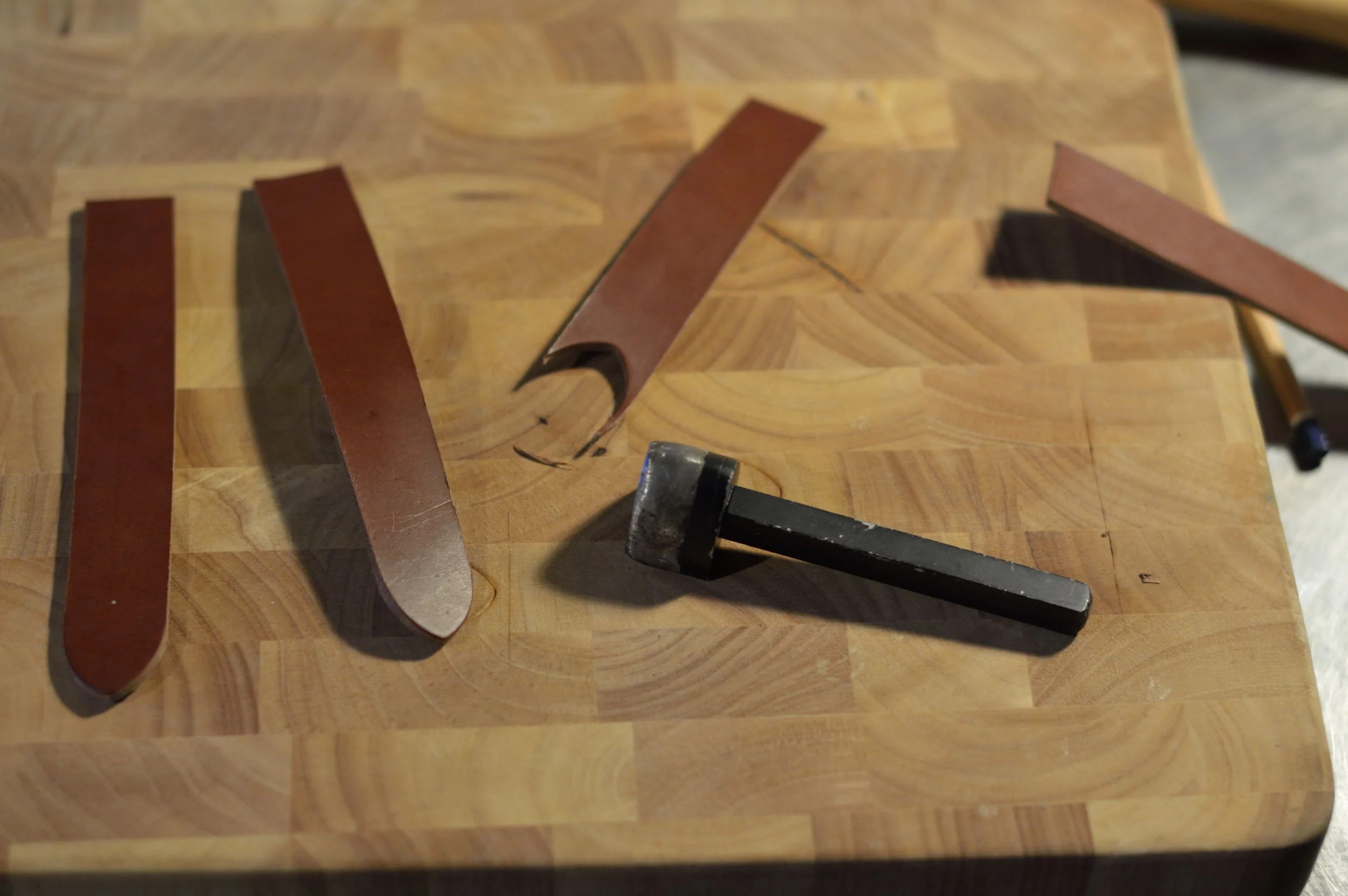 Next it was time to make some new straps. I used a 3mm walnut coloured veg tanned leather. I cut the leather using a strap cutter then finished the ends with a strap end punch.